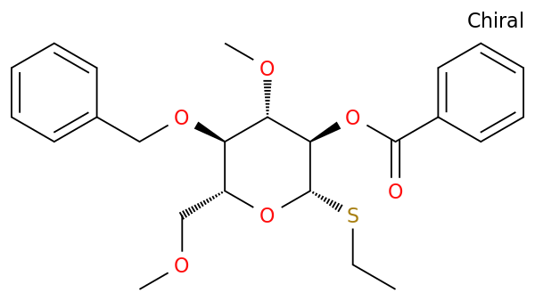 (2S,3R,4S,5R,6R)-5-(Benzyloxy)-2-(ethylthio)-4-methoxy-6-(methoxymethyl)tetrahydro-2H-pyran-3-yl benzoate is a stereochemically defined thioglycoside derivative used in advanced carbohydrate synthesis. The presence of benzyloxy and benzoyl functionalities enables controlled regioselective transformations during multi-step synthesis.