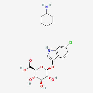 • Structure: 6‑chloro‑1H‑indol‑3‑yl β‑D‑glucopyranuronate present as the monofumarate‑type cyclohexylammonium salt, with a β‑glycosidic linkage between the indole C3‑O and the D‑glucuronic‑acid ring.